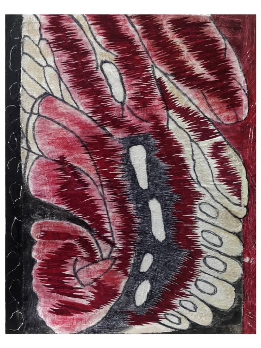 Threadwork embroidery and acrylic on canvas