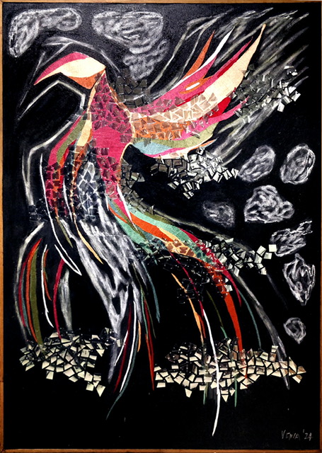 Year: 2024 53″ x 37″ Mixed media on canvas silk thread embroidery & acrylic paints