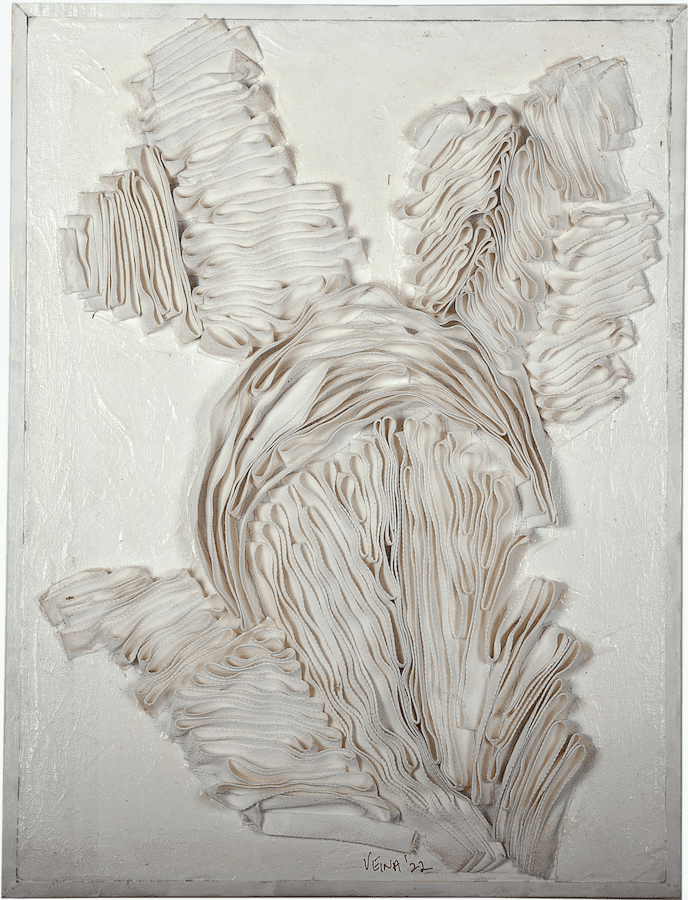3D Cotton tape embroidery, gesso and acrylic paints