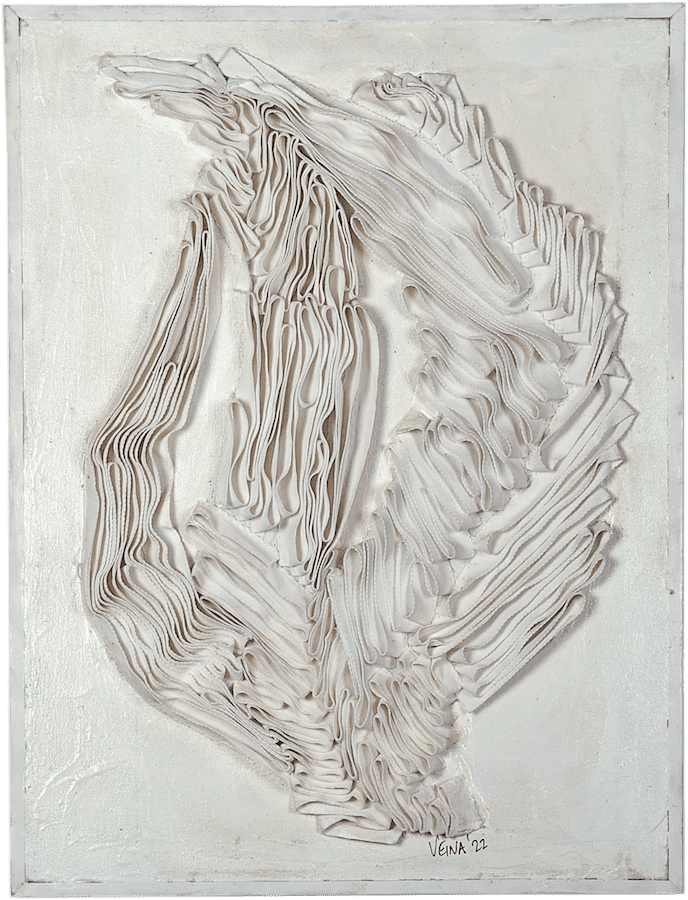 3D Cotton tape embroidery, gesso and acrylic paints