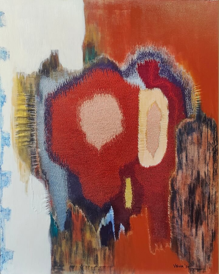 Mixed media – silk thread embroidery & acrylic paints on canvas