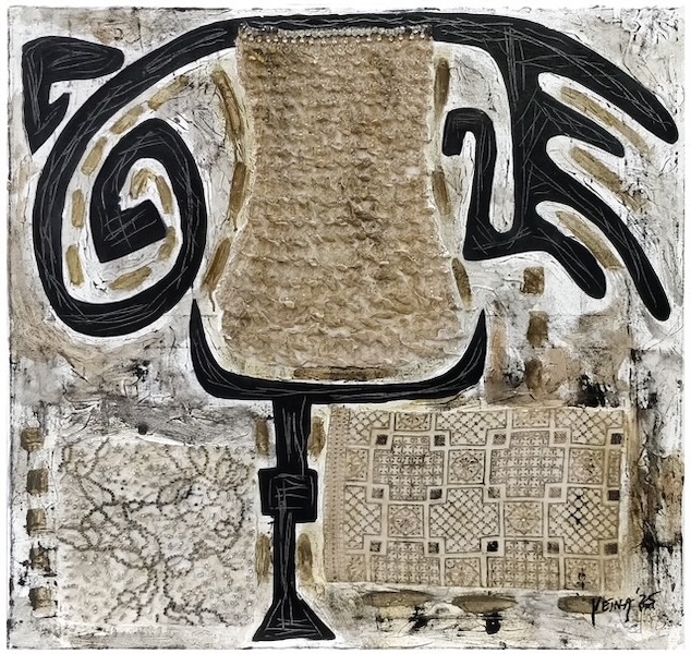 Year: 2025 32″ x 32″ Mix Media on Canvas Embroidered embellishments and acrylic paints.